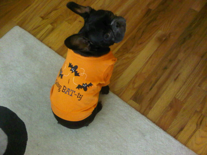 I don’t do much for Halloween, but I do like to dress my dog up in this cute little sweatshirt I found a few years ago. He could give two shits, but I think he looks adorable.